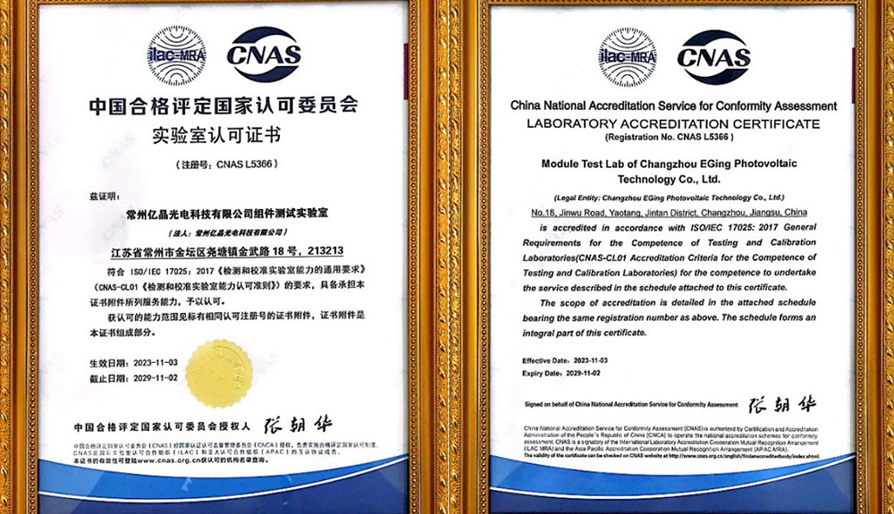 EGING PV, founded in 2003, has a registered capital of 2,129.46 million CNY.(about $327.6 million) Currently, EGING PV has more than 1,500 employees and covers an area of more than 1,666,666 ㎡. As one of the first PV producers in China, EGING PV is mainly specialized in R&D、production and sales of high-efficiency crystalline silicon photovoltaic cells and modules, with a production capacity of more than 25GW of photovoltaic cell and modules. At the same time, the Company has successful experience in the construction and operation of photovoltaic power stations, whose industrial chain is extended to the field of PV power stations. In 2011, the Company completed IPO in Shanghai A-share market.